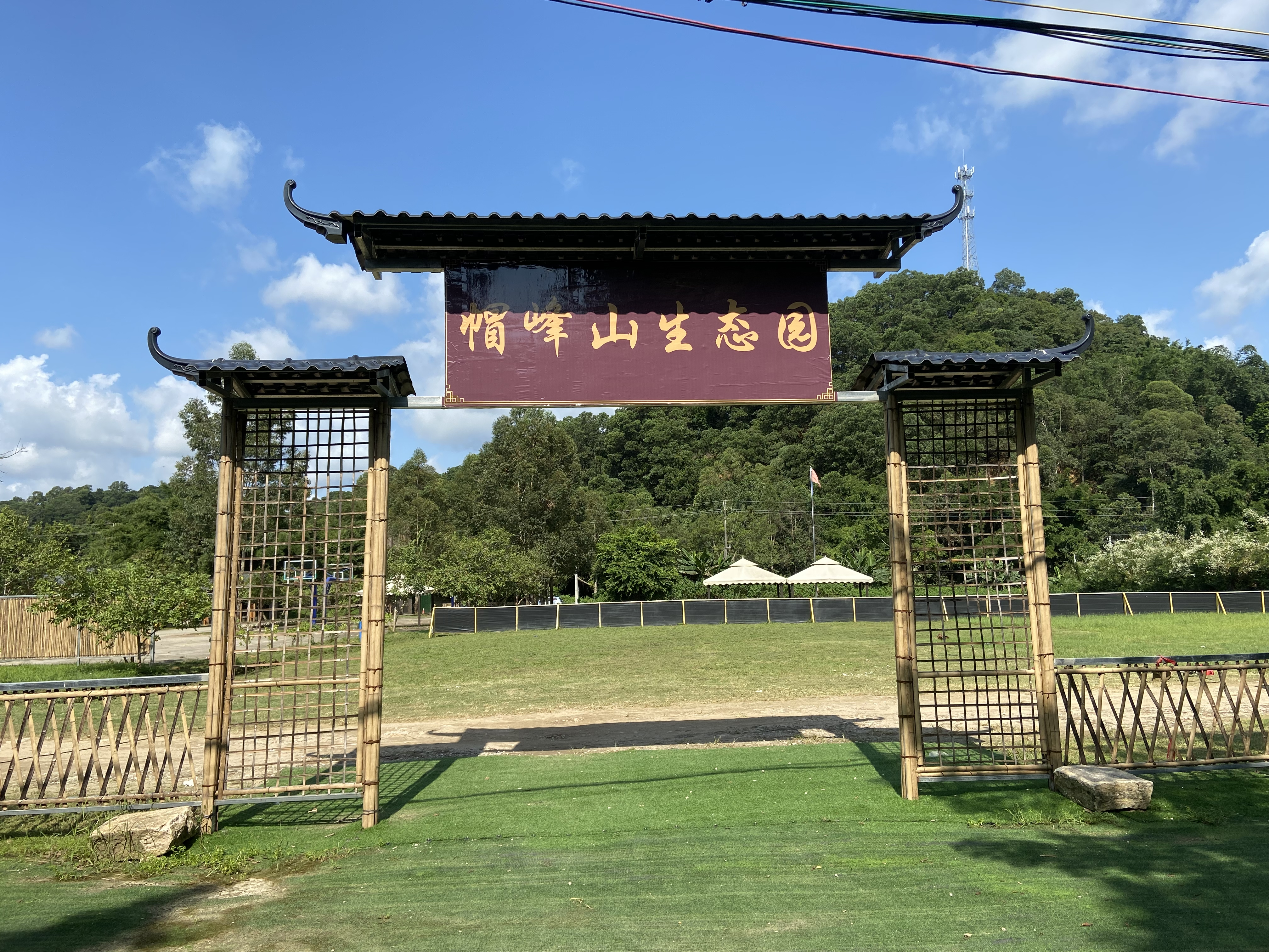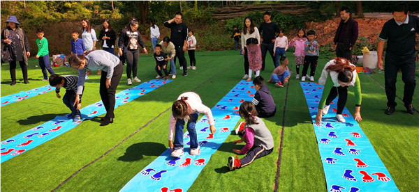 东华小学519班亲子户外活动在东莞松山湖花海农家乐松湖生态园 早上九点钟,东华小学519班的大小伙伴儿们都陆陆续续来到了东莞松山湖花海农家乐松湖生态园的正门口,在松山湖拓展教练的组织下,清点了活动人数,在松湖生态园办公室办理入园手续。今天的亲子户外活动就由我们松湖生态园的金牌教练潘教练带领。大家在潘教练的组织下,小朋友在前面,家长在后面,排成一列纵队有序入园。潘教练组织大家在松湖生态园的特色景点“梦幻飞瀑”前拍集体合影。拍完合影就在教练的带领下到了我们的松山湖拓展基地。今天上午的亲子户外活动有:支援前线,飞龙在天,共同进退,奔跑吧毛毛虫。。。