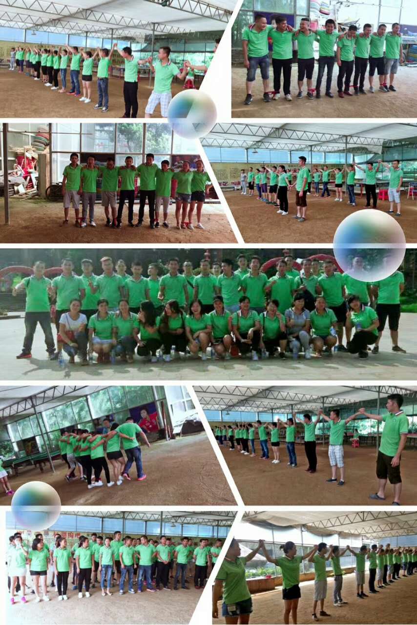 落雨一过,已是初秋。暑热慢慢退去,凉风缓缓袭来。再见啦,八月。你好呀,九月。有些对的人好的事儿,整朝你轻轻走来。今天是9月1日,全新的一天开始了,东莞松湖生态园迎来了这个月的第一批好朋友。东莞市文成抵偿房经纪有限公司的团队拓展活动,大家都穿着果绿色工作服,一片的生机勃勃,欣欣向荣。今天的的教练是我们风趣幽默的陈教练,大家在成教练的带领下,在松湖生态园的入园正门口的标志梦幻飞瀑前拍集体照留影。